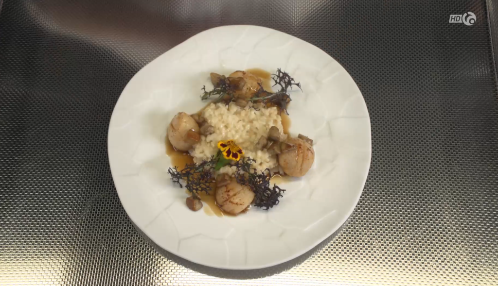 NOIX DE ST-JACQUES SNACKÉES FAÇON ROSSINI, RISOTTO CRÉMEUX AUX TRUFFES