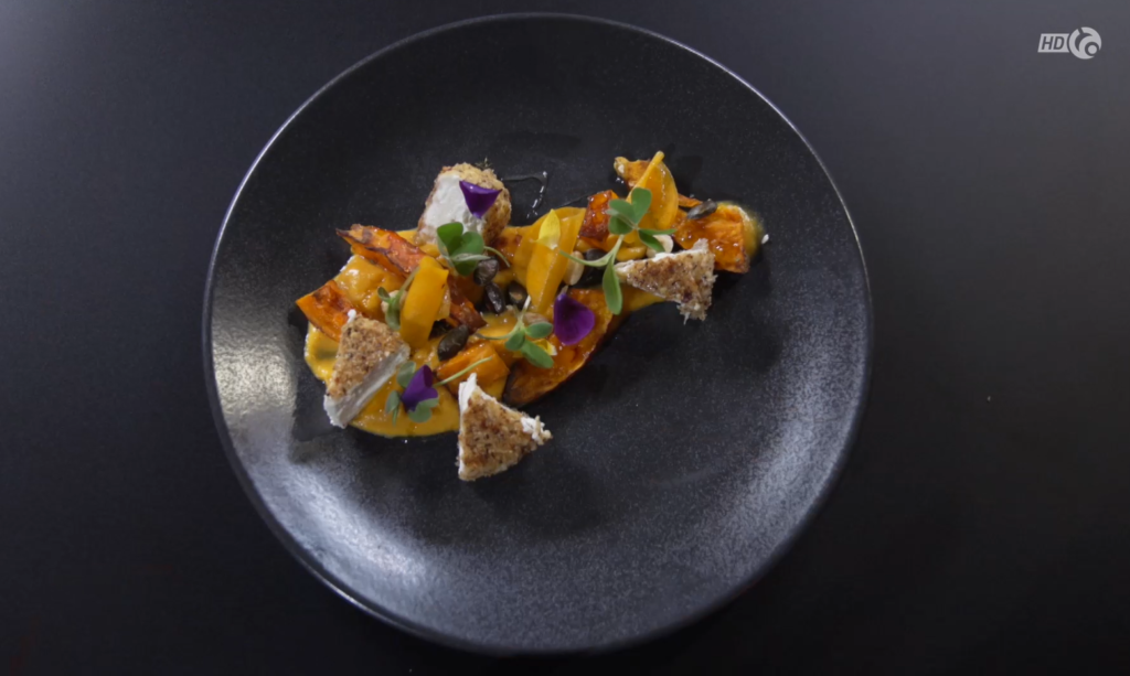 DÉCLINAISON DE COURGES ET SON CHÈVRE PANÉ AUX NOISETTES
