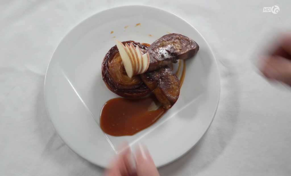 TATIN DE POMME, CARAMEL AU CALVADOS ET FOIE GRAS POÊLÉ