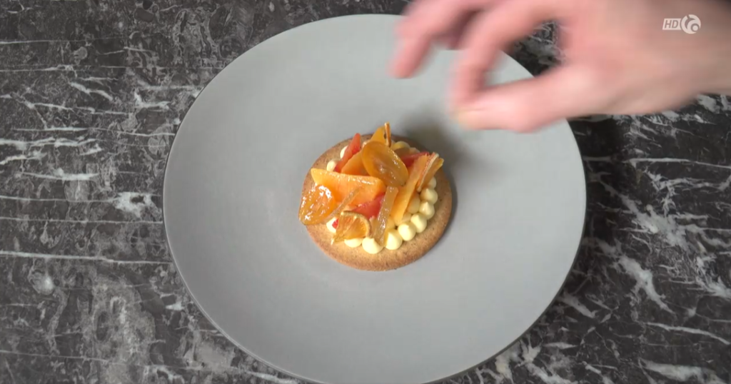 Tarte sablée aux agrumes frais chez Frédéric Marchand