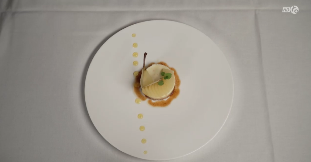 Poire pochée à la bergamote chez Jean-Yves Drevet